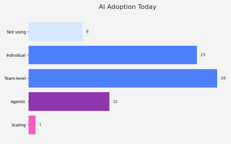 In other words, most teams are still experimenting, not operationalizing. That gap is exactly where the next competitive advantage will come from.